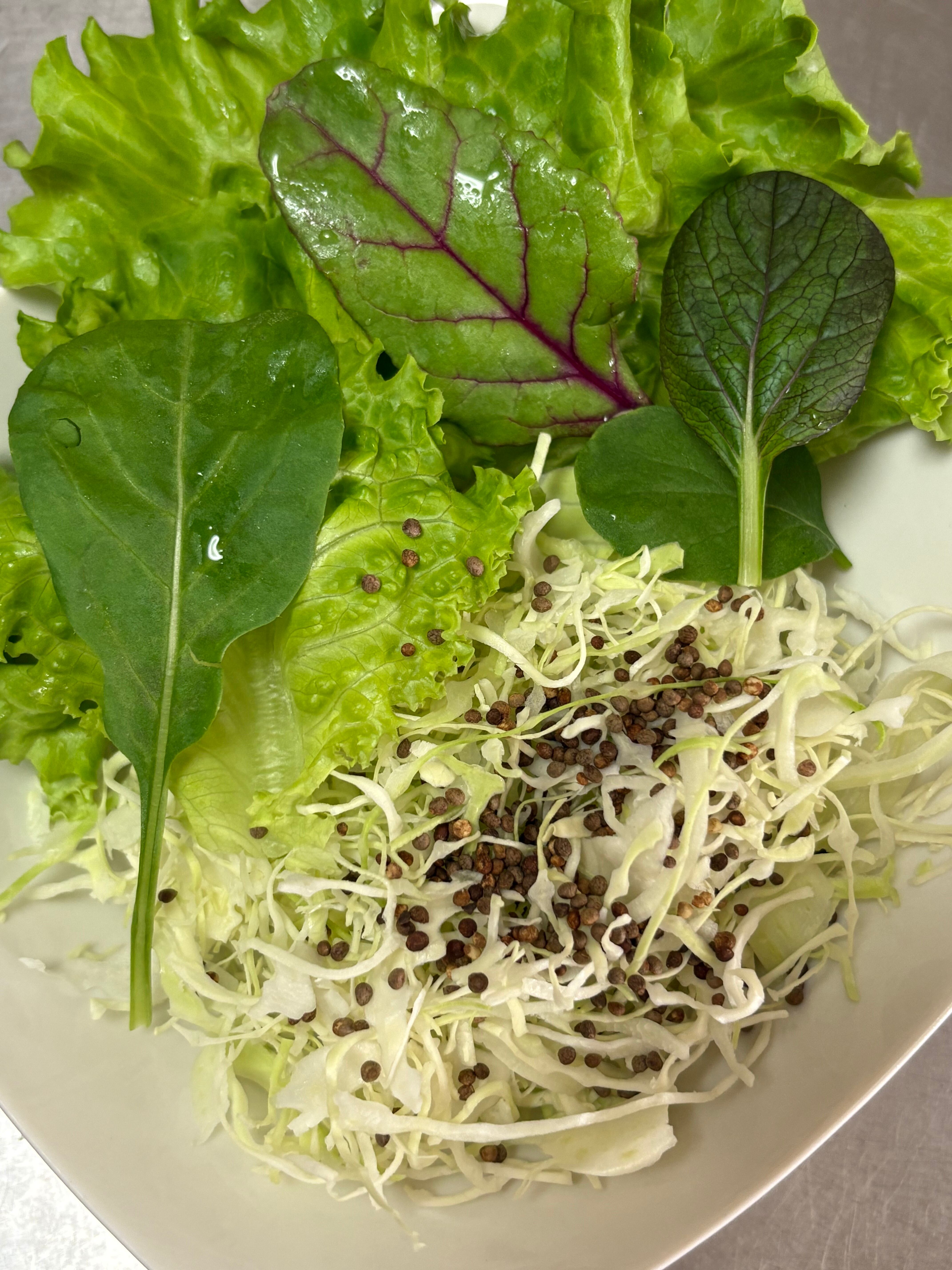 ■えごまの実は健康を支えるオメガ3を豊富に含み、生のままサラダにトッピングして風味を楽しめます。